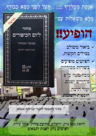 IYH this year, R' Avrohom Aumann from our Beitar branch, will be publishing a Yom Kippur Machzor according to Minhag Ashkenaz. He requested to send our newslist the following words: